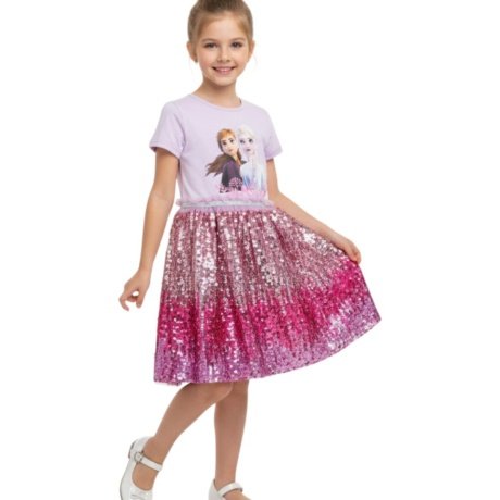 Designed in a soft and cheerful pink shade with an all-over self-print featuring Elsa and Anna, this dress blends playful character charm with everyday comfort. The slip-on style (no zipper) makes it easy to wear, offering both convenience and comfort for active little princesses.