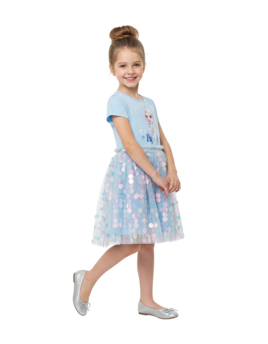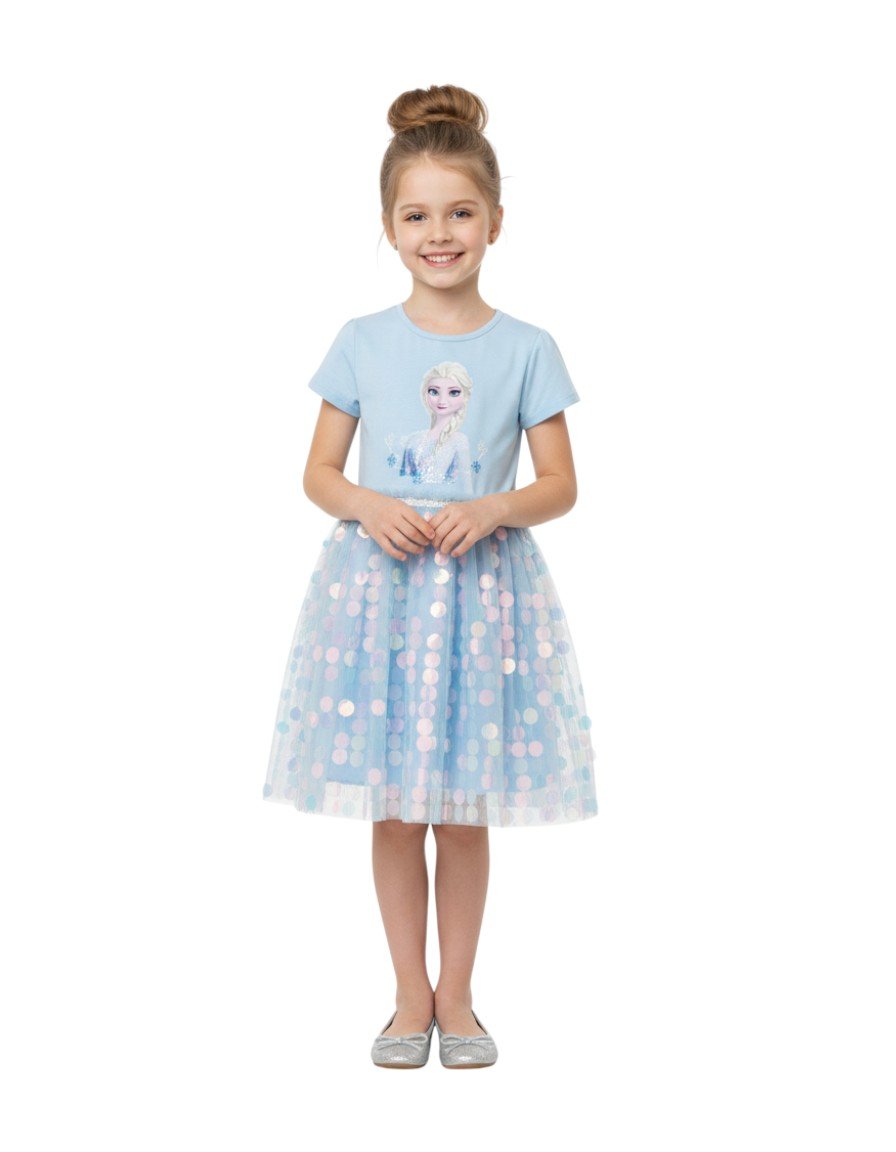 Designed in a stunning light blue shade with beautiful glitter accents, this dress is perfect for birthdays, themed parties, school performances, photoshoots, and special occasions. Available in sizes 1 year to 12 years, it’s made for toddlers and older girls who love to shine.