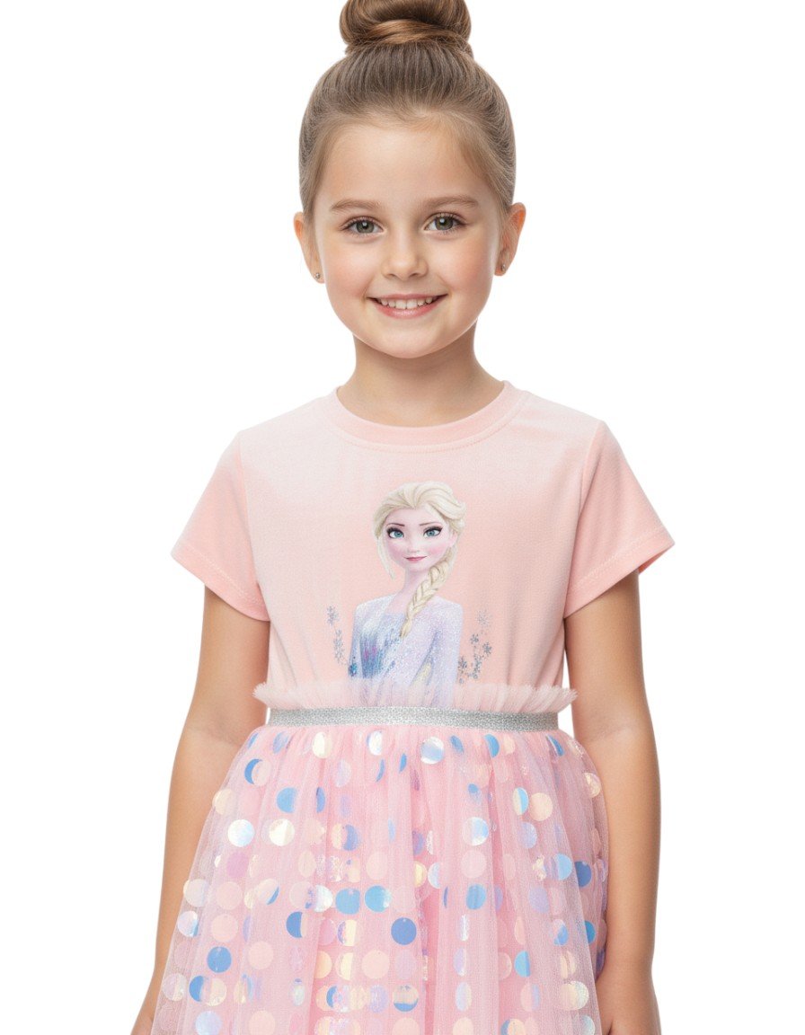 Let your little princess sparkle in soft elegance with the Elsa Glitter Dress Shrimp Pink without Zipper – 1Y to 12Y. ✨ Inspired by the magical world of Disney’s Frozen, this charming dress blends glittery glamour with a sweet shrimp pink shade that feels both playful and graceful.