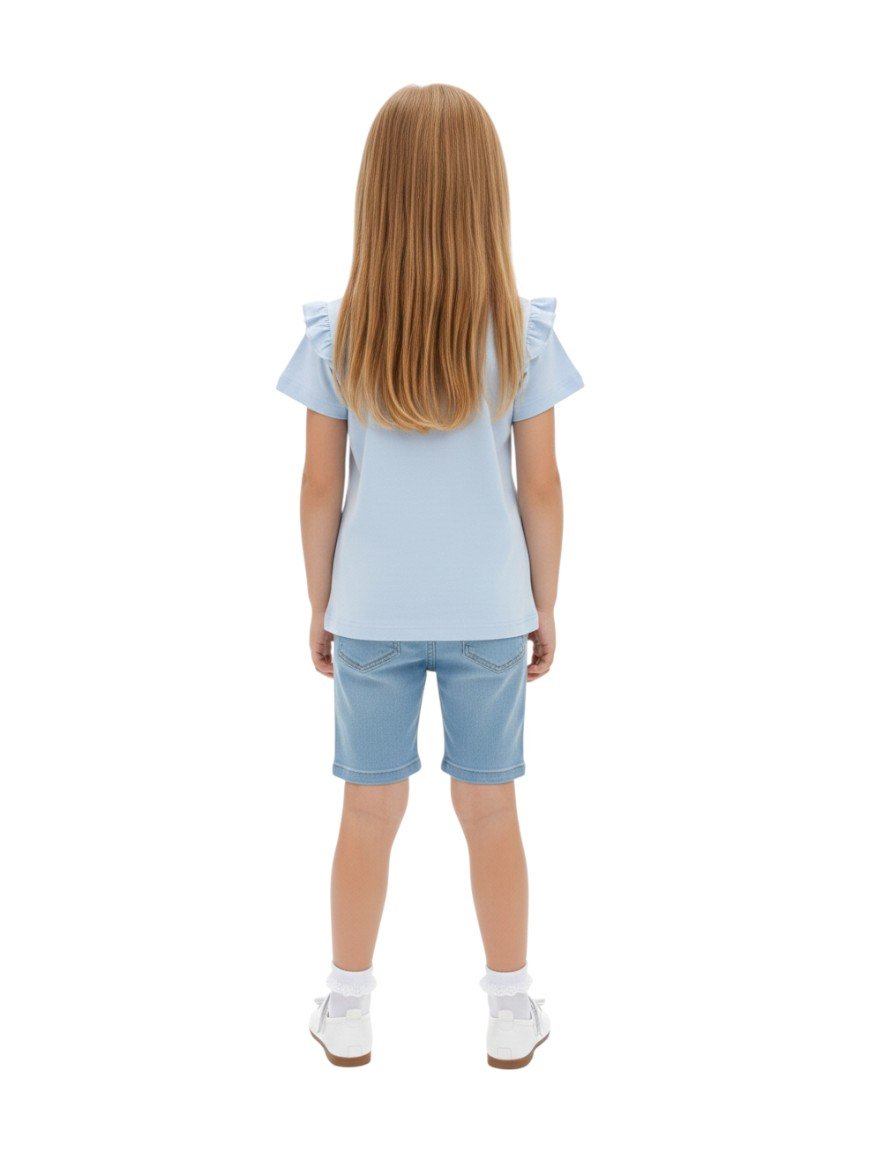 Go for the blue tee with denim shorts or leggings and cute sneakers for a comfy school or playdate look.