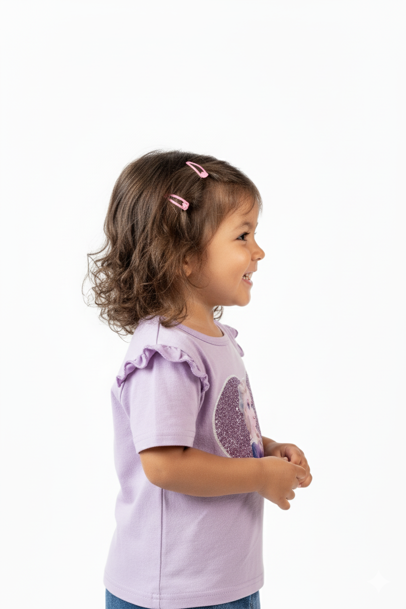 Available in magical colors—Pink, Blue, Purple, and White—this comfy tee brings sparkle and fun to everyday outfits. Whether it’s a casual day out, a playdate, or a royal tea party at home, this tee adds that touch of fairy-tale charm your little one will adore! 💫