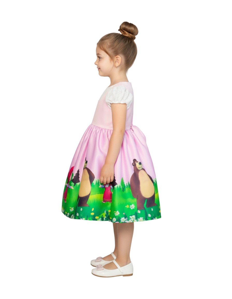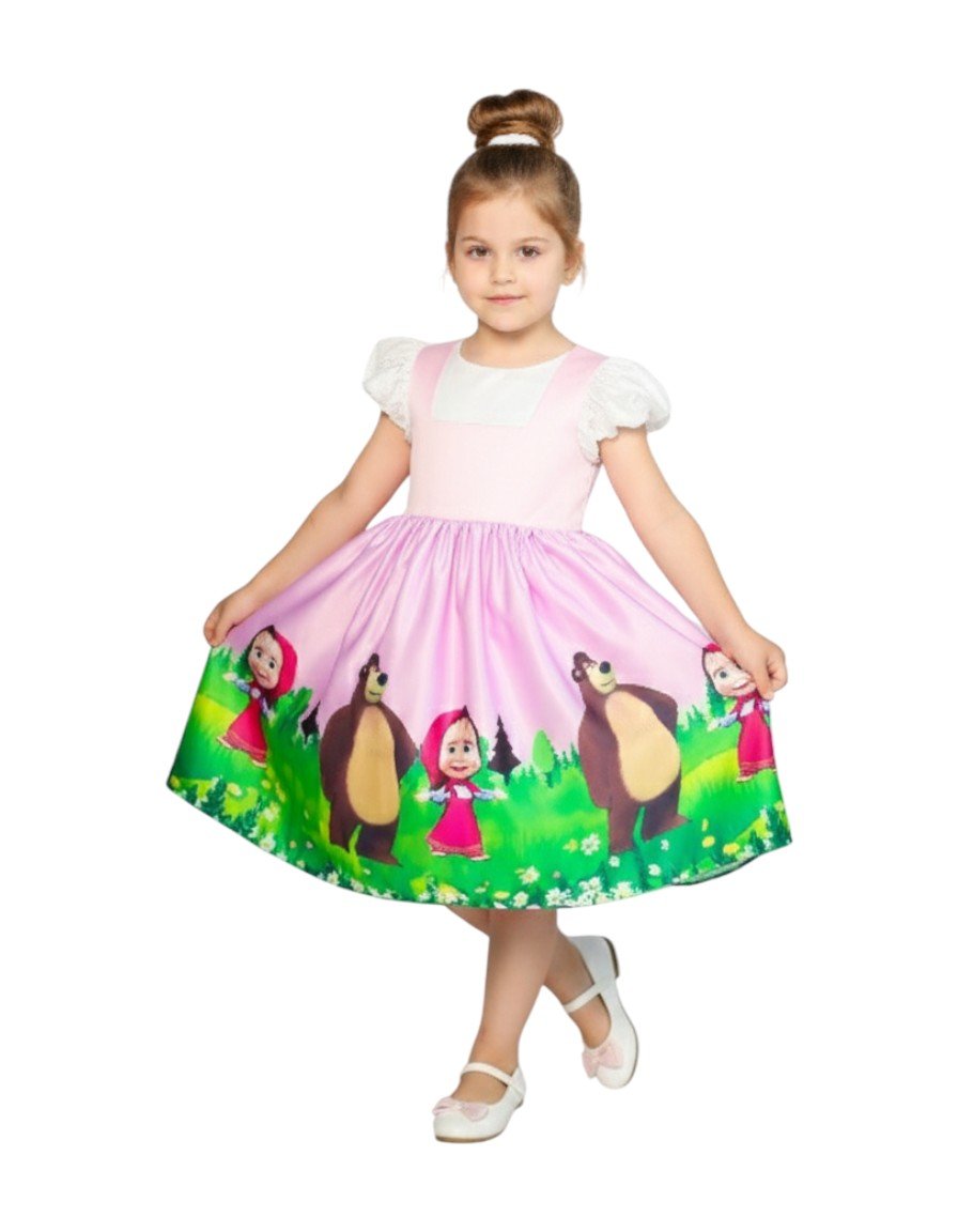Alt text: Masha and the Bear Light Pink Dress β Girls Cartoon Theme Dress 1Y to 10Y