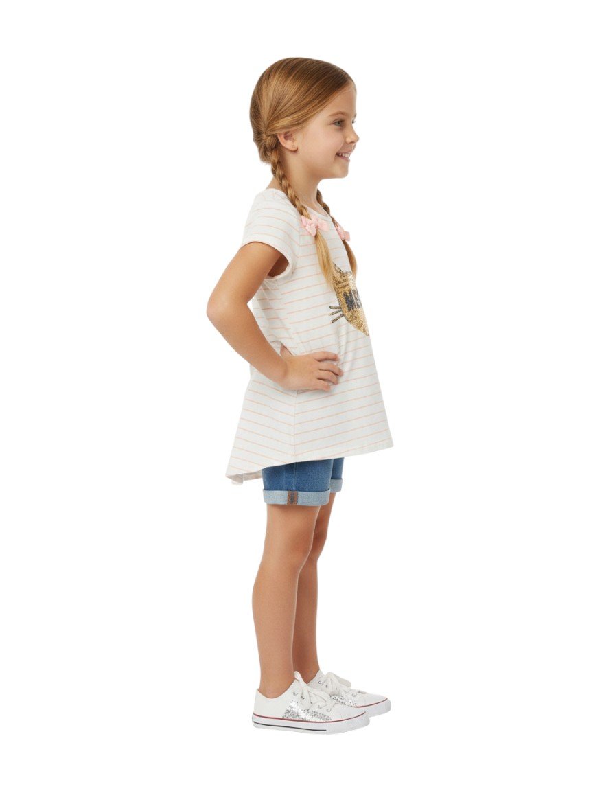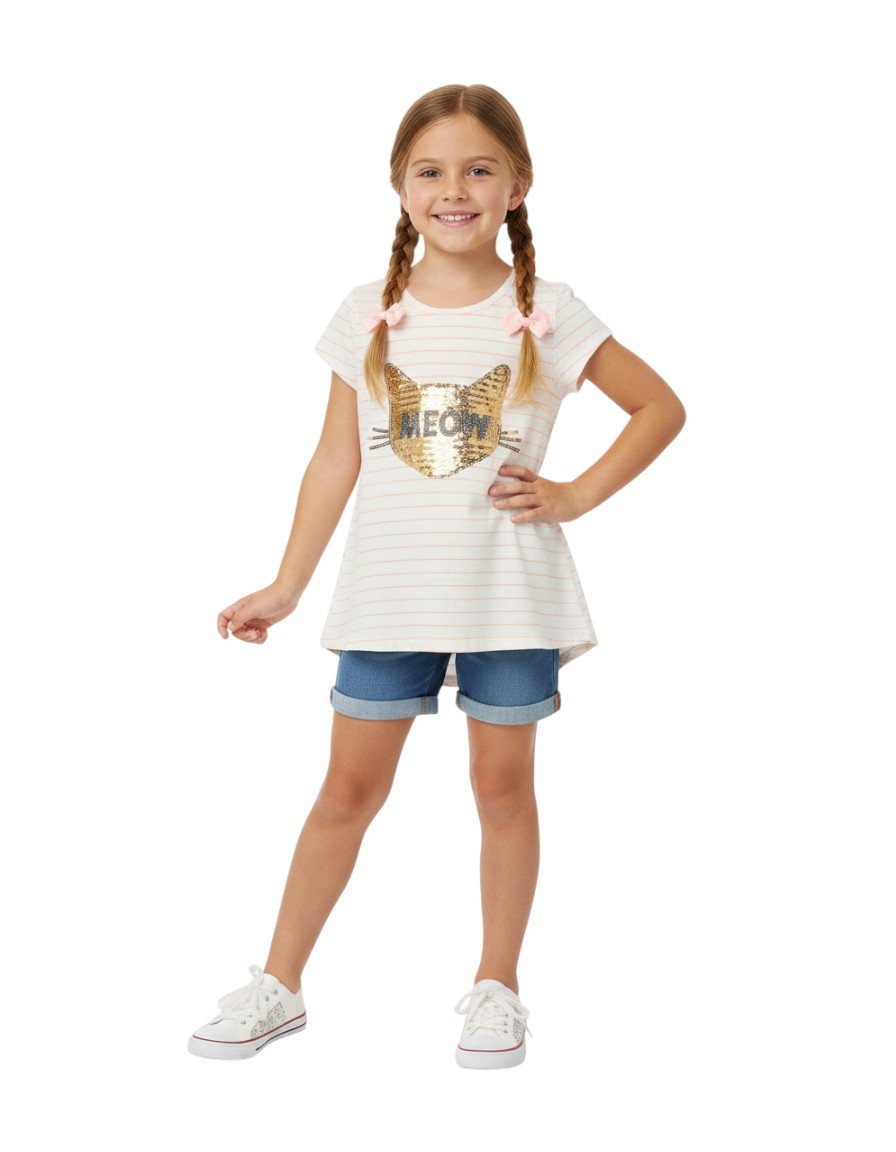 The Meow Printed Sequins Casual Dress – 3Y to 7Y is where cute meets sparkle.