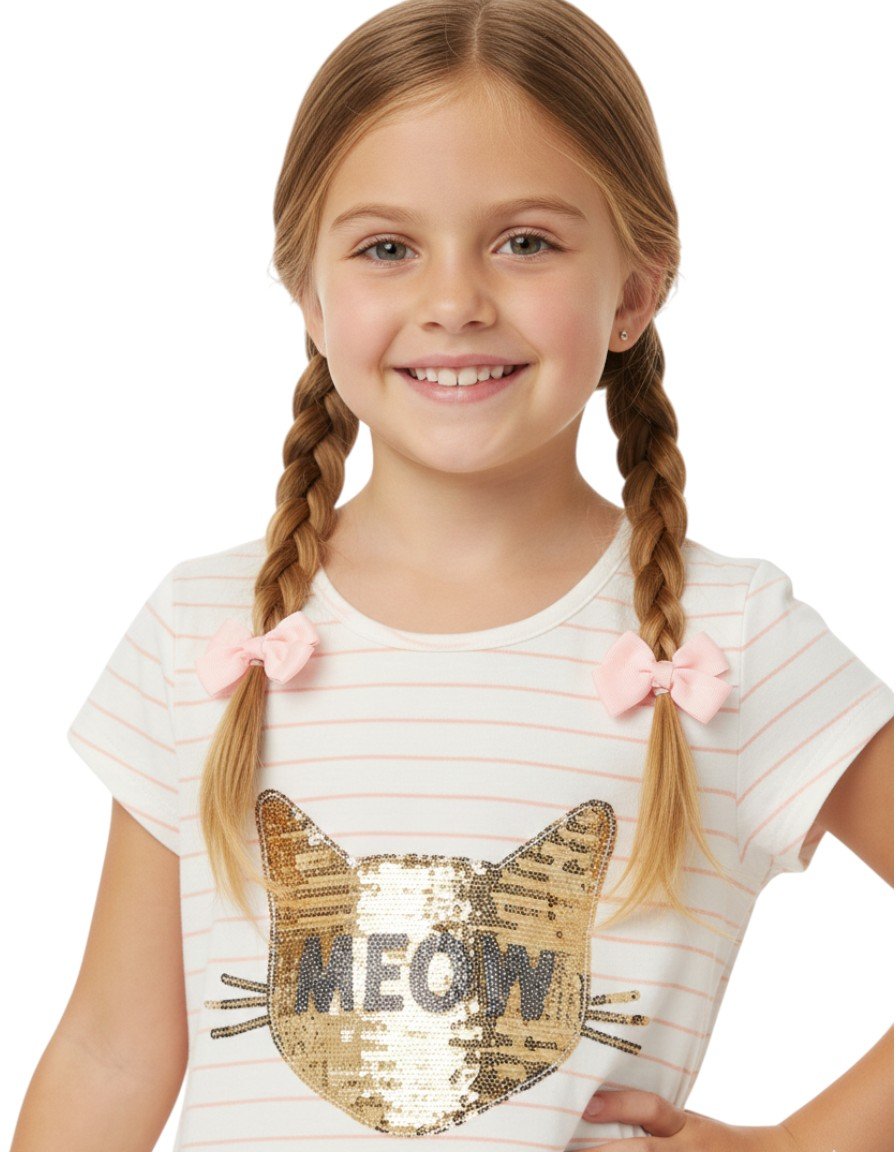 Cute, playful, and full of sparkle — the Meow Printed Sequins Casual Dress – 3Y to 7Y is perfect for little girls who love cats and a touch of shine. 🐱✨ Featuring an adorable “Meow” print enhanced with eye-catching sequins, this dress combines fun design with everyday comfort.
