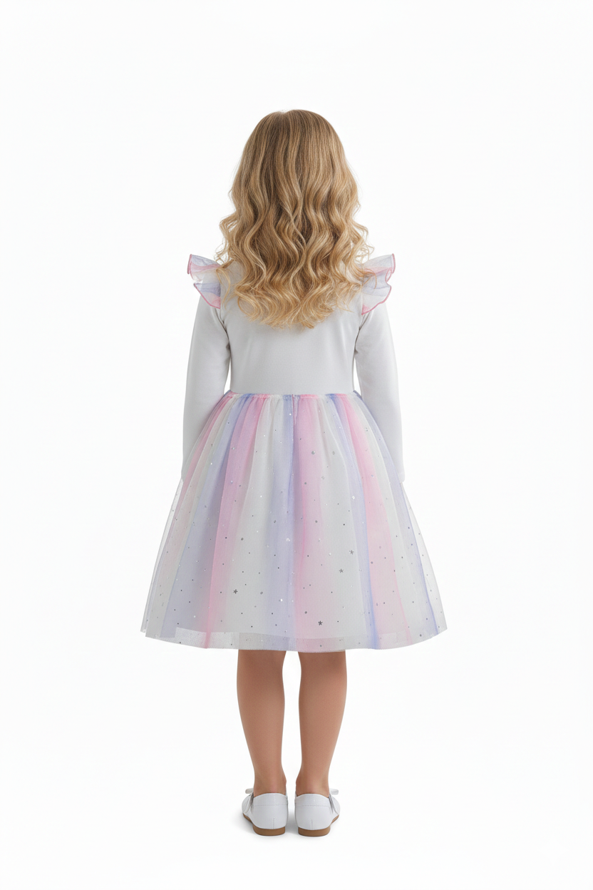 The Starlight Sparkle Unicorn Dress – White & Purple – 2Y to 8Y is made for twirling, glowing, and unforgettable princess moments.
