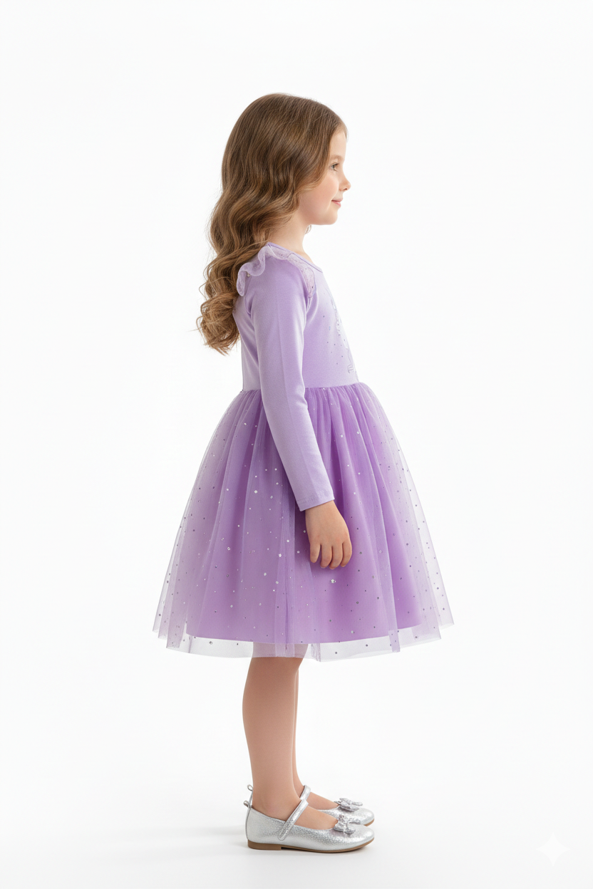 Perfect for girls aged 2 years to 8 years, this magical dress is ideal for birthdays, themed parties, photoshoots, school events, and special celebrations. The soft fabric ensures comfort while the elegant silhouette and sparkle accents create a truly fairytale look.