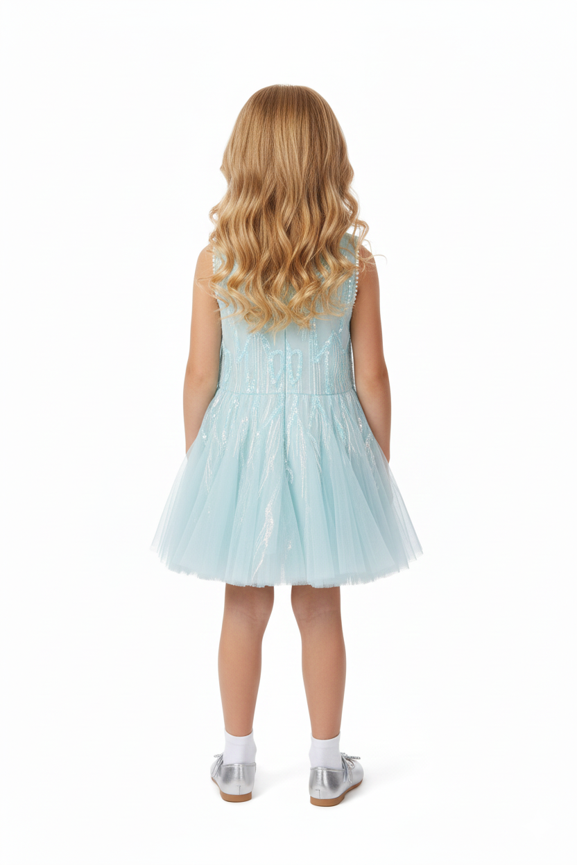 Alt text: Glacier Shine Party Dress – Blue – Girls Party Dress 2Y to 10Y